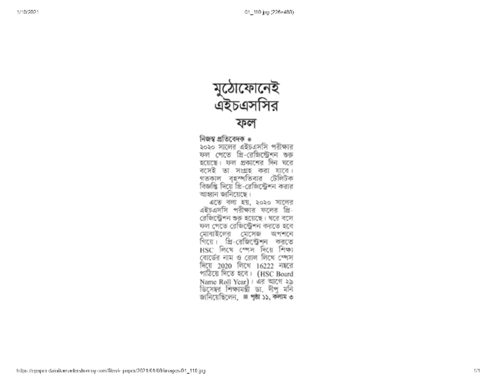 মুঠোফোনেই এইচএসসির ফল Published on 08 January 2021 Newspaper দৈনিক আমাদের সময় Category Public Examination Download