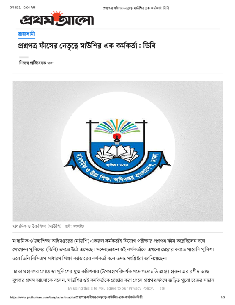 প্রশ্নপত্র ফাঁসের নেতৃত্বে মাউশির এক কর্মকর্তা_ ডিবি