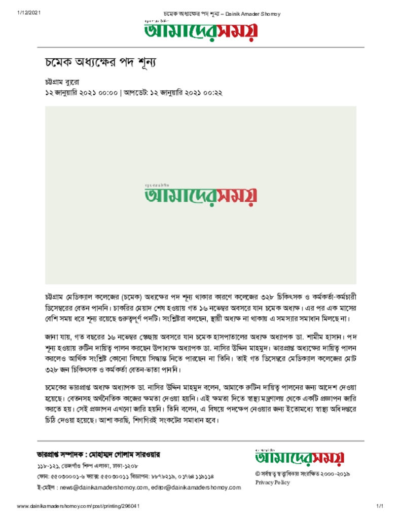 চমেক অধ্যক্ষের পদ শূন্য – Dainik Amader Shomoy