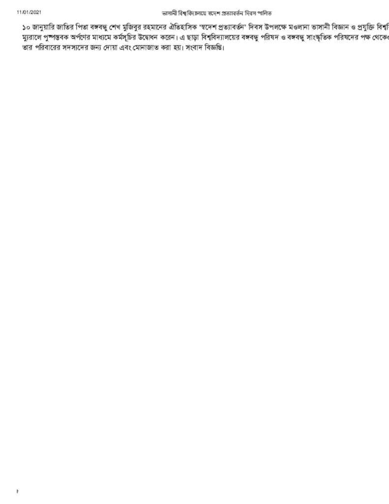 ভাসানী বিশ্ববিদ্যালয়ে স্বদেশ প্রত্যাবর্তন দিবস পালিত Published on 11 January 2021 Newspaper দৈনিক যুগান্তর Category Science Education Download