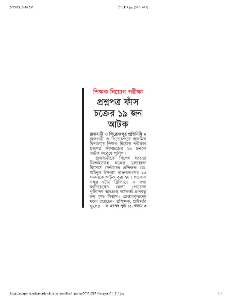 প্রশ্নপত্র ফাঁস চক্রের ১৯জন আটক Published on 21 May 2022 Newspaper দৈনিক আমাদের সময় Category Others Download