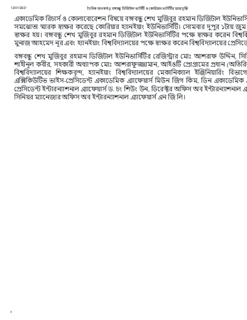 দৈনিক জনকন্ঠ __ বঙ্গবন্ধু ডিজিটাল ভার্সিটি ও কোরিয়ান ভার্সিটির মধ্যে চুক্তি
