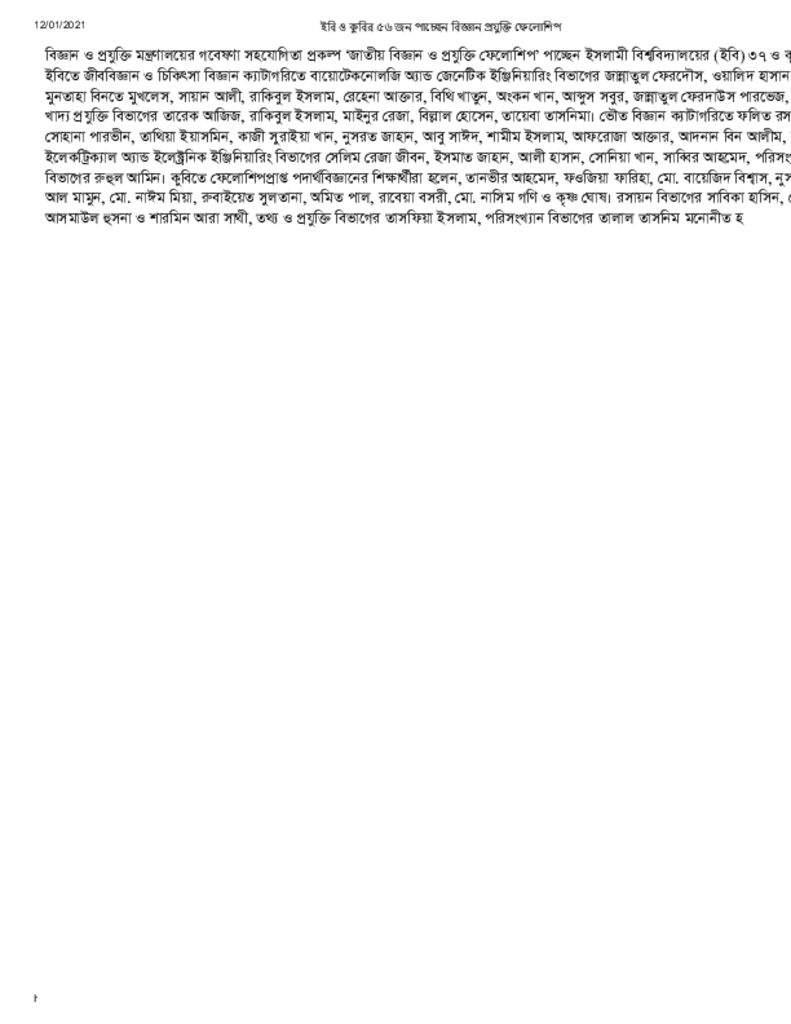 ইবি ও কুবির ৫৬ জন পাচ্ছেন বিজ্ঞান প্রযুক্তি ফেলোশিপ Published on 12 January 2021 Newspaper দৈনিক যুগান্তর Category General Education Division Secondary and Higher Education Education Ministry / Division / Directorate General Education Higher Education Public Download