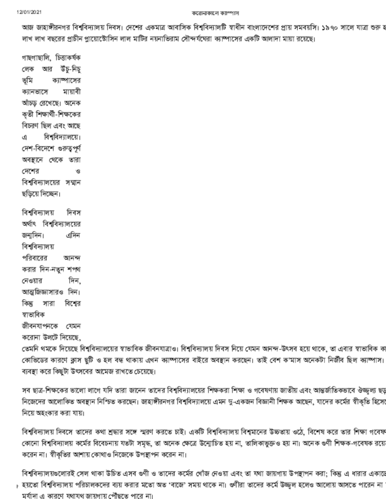 করোনাকালে ক্যাম্পাস Published on 12 January 2021 Newspaper দৈনিক যুগান্তর Category Personal Opinion / Discussion / Commentary Division Secondary and Higher Education Education Ministry / Division / Directorate Download