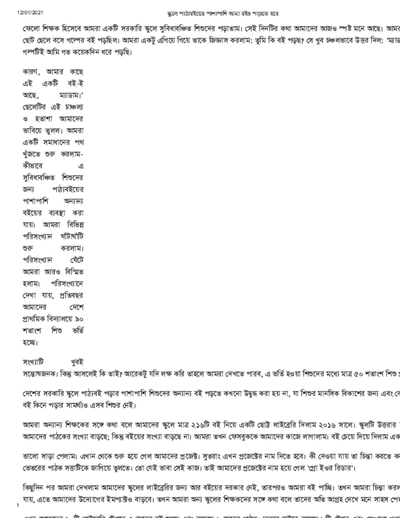 স্কুলে পাঠ্যবইয়ের পাশাপাশি অন্য বইও পড়াতে হবে Published on 12 January 2021 Newspaper দৈনিক যুগান্তর Category Personal Opinion / Discussion / Commentary Division Secondary and Higher Education Education Ministry / Division / Directorate Download