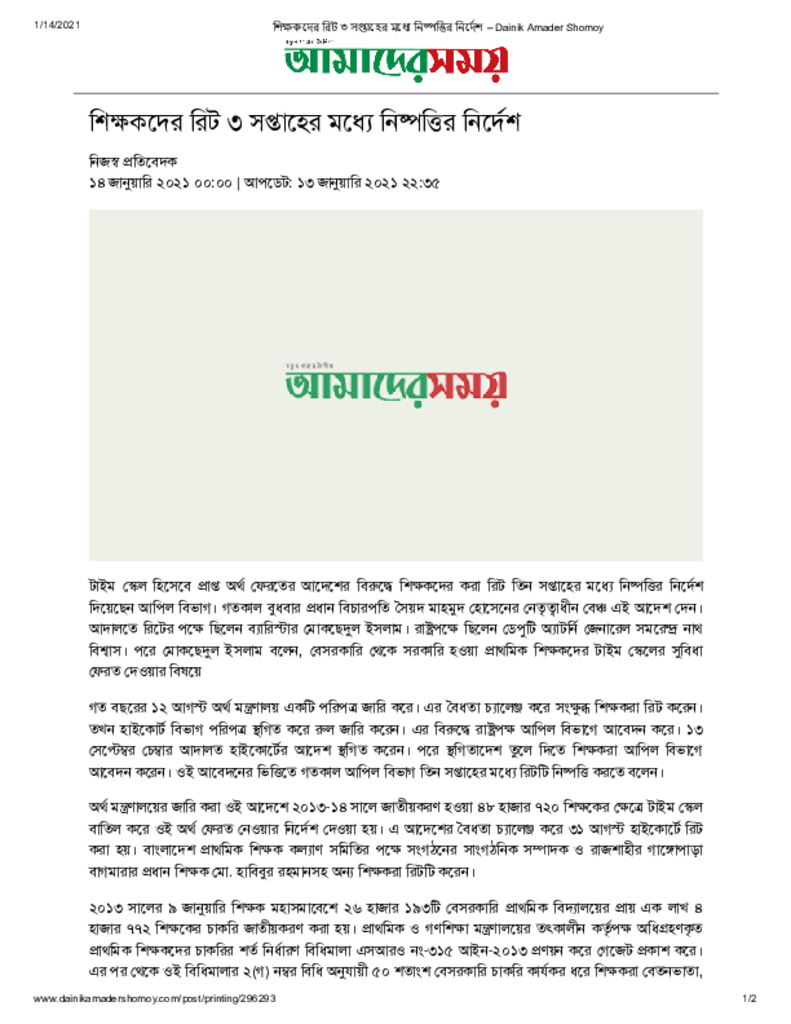 শিক্ষকদের রিট ৩ সপ্তাহের মধ্যে নিষ্পত্তির নির্দেশ – Dainik Amader Shomoy
