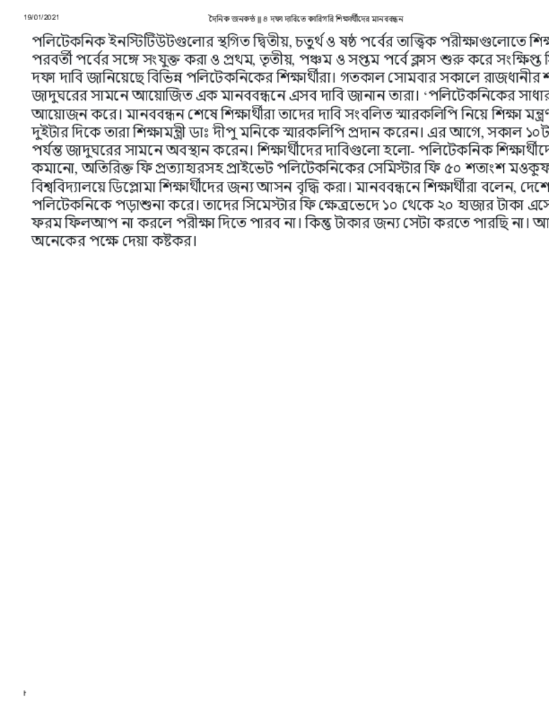দৈনিক জনকন্ঠ __ ৪ দফা দাবিতে কারিগরি শিক্ষার্থীদের মানববন্ধন