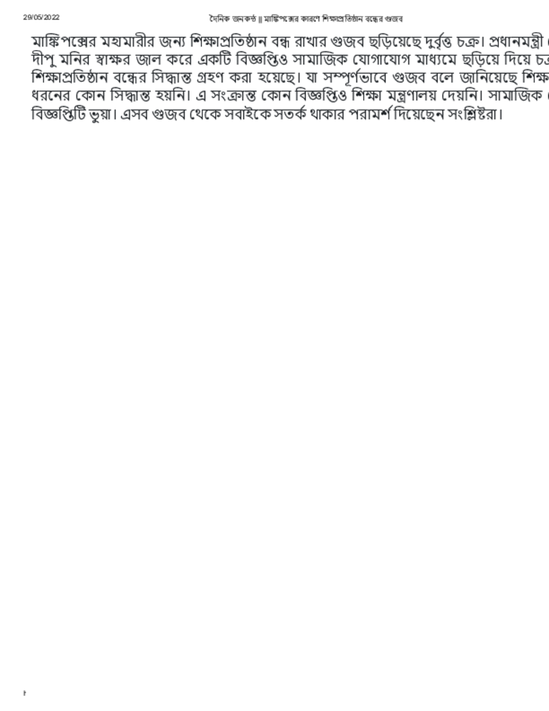 দৈনিক জনকন্ঠ __ মাঙ্কিপক্সের কারণে শিক্ষাপ্রতিষ্ঠান বন্ধের গুজব Published on 29 May 2022 Newspaper দৈনিক জনকণ্ঠ Category Educational Ministry / Departments Division Secondary and Higher Education Education Ministry / Division / Directorate General Education Download