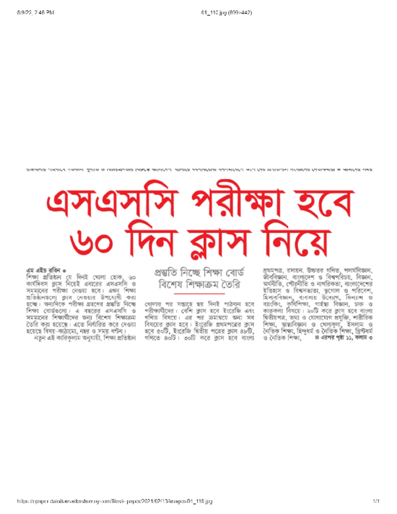 এসএসসি পরীক্ষা হবে ৬০ দিন ক্লাস নিয়ে Published on 13 February 2021 Newspaper দৈনিক আমাদের সময় Category Educational Ministry / Departments Download