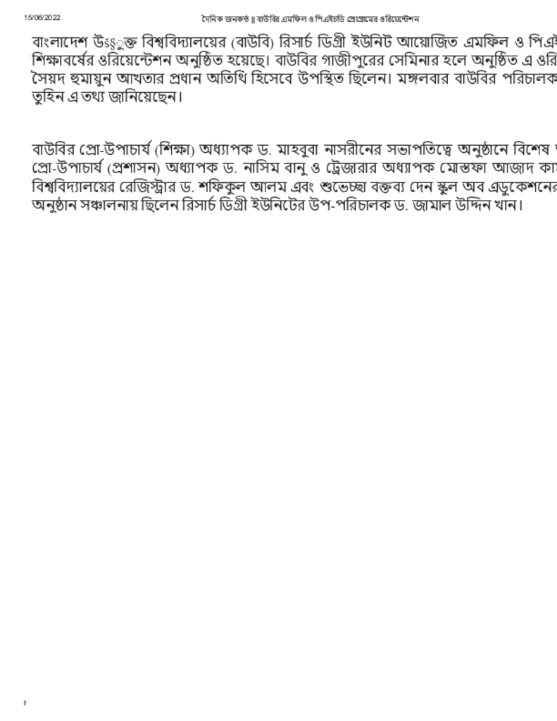 দৈনিক জনকন্ঠ __ বাউবির এমফিল ও পিএইচডি প্রোগ্রামের ওরিয়েন্টেশন