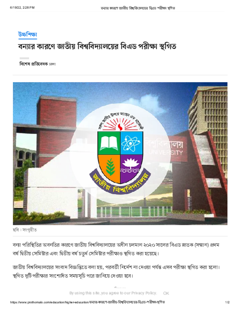 বন্যার কারণে জাতীয় বিশ্ববিদ্যালয়ের বিএড পরীক্ষা স্থগিত