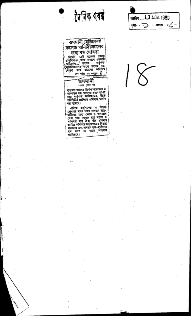 ওসমানী মেডিকেল কলেজ অনির্দিষ্টকালেরজন্র বন্ধ ঘোষণা Published on Newspaper দৈনিক খবর Category Professional Education Professional Education Medical Download