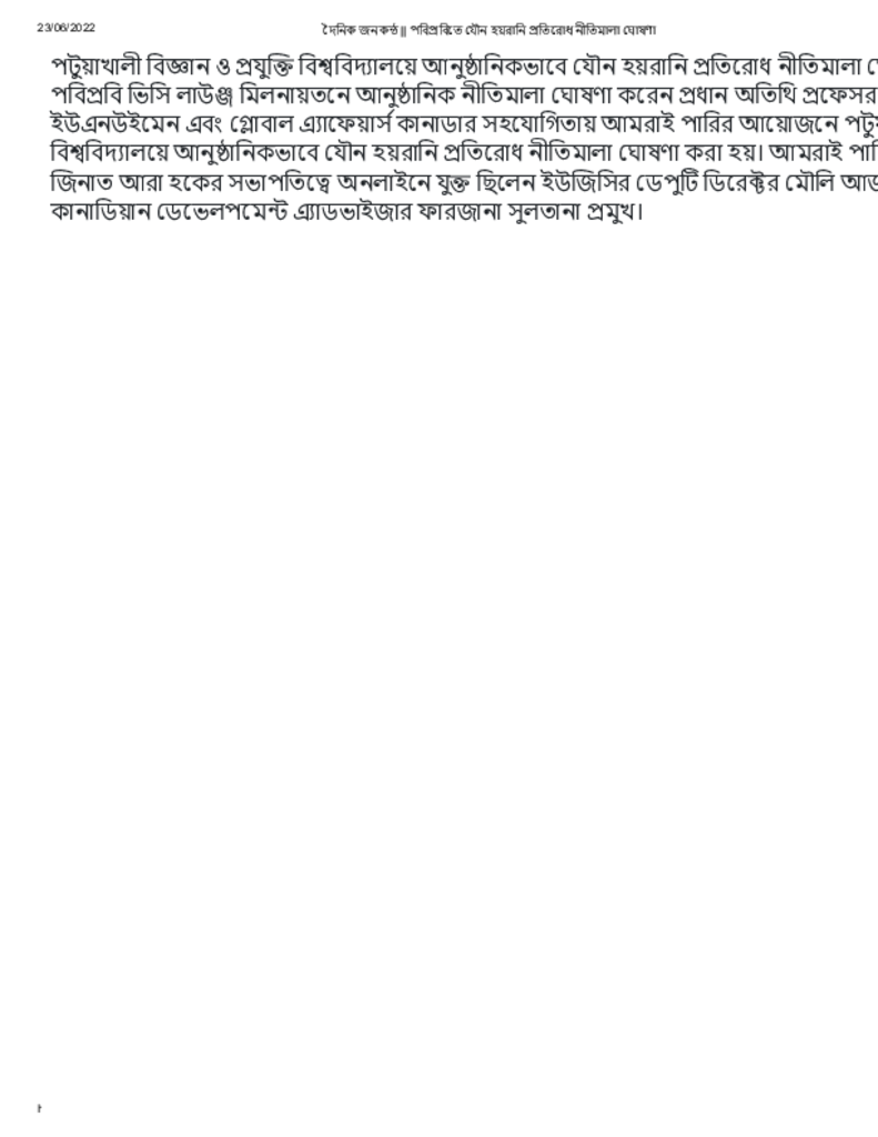 দৈনিক জনকন্ঠ __ পবিপ্রবিতে যৌন হয়রানি প্রতিরোধ নীতিমালা ঘোষণা Published on 23 June 2022 Newspaper দৈনিক জনকণ্ঠ Category Science Education Download