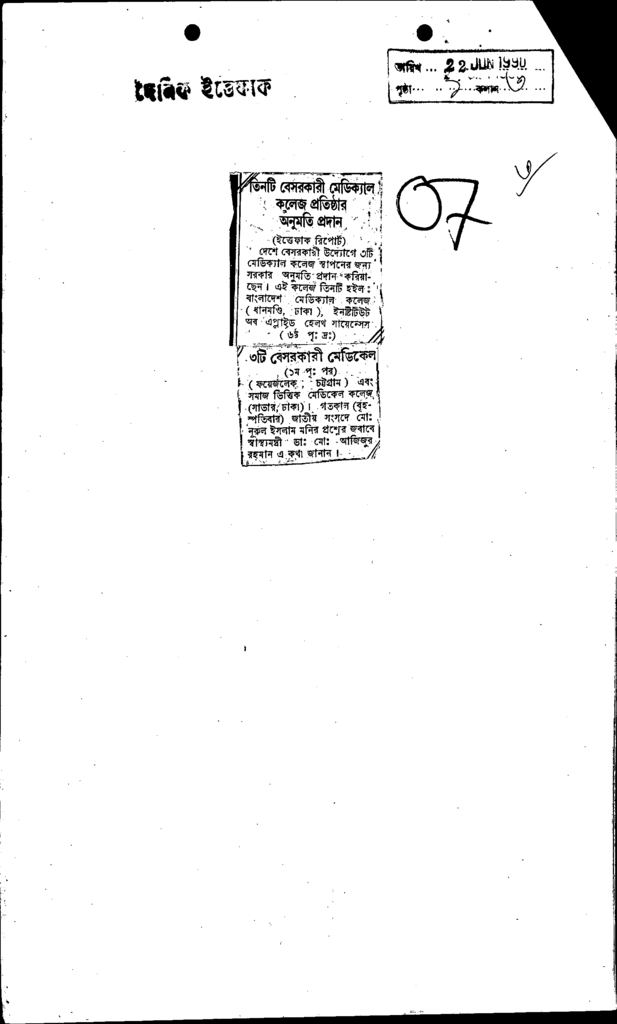 তিনটি বেসরকারী কলেজ প্রতিষ্ঠার অনুমতি প্রদান Published on Newspaper দৈনিক ইত্তেফাক Category Professional Education Professional Education Medical Download