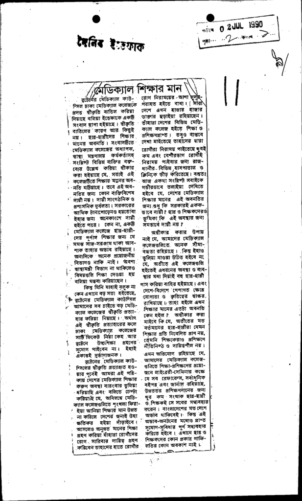 মেডিক্যাল শিক্ষার মান Published on Newspaper দৈনিক ইত্তেফাক Category Professional Education Professional Education Medical Download