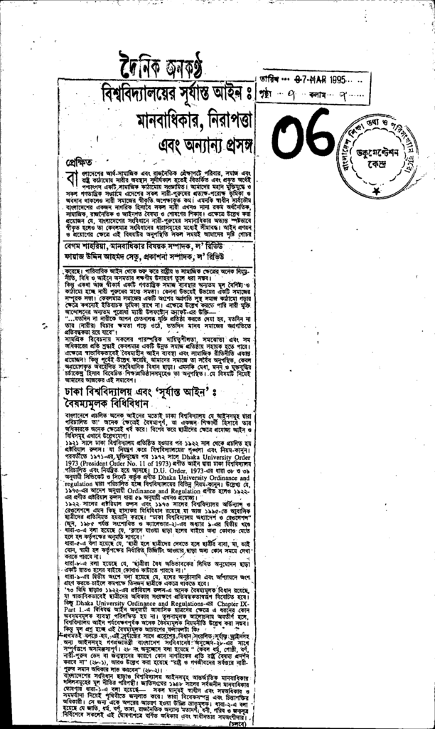 বিশ্ববিদ্যালয়ের সূর্যাস্ত আইন:মানবাধিকার, নিরাপত্তা এবং অন্যান্য প্রসঙ্গ Published on Newspaper দৈনিক জনকণ্ঠ Category General Education General Education Download