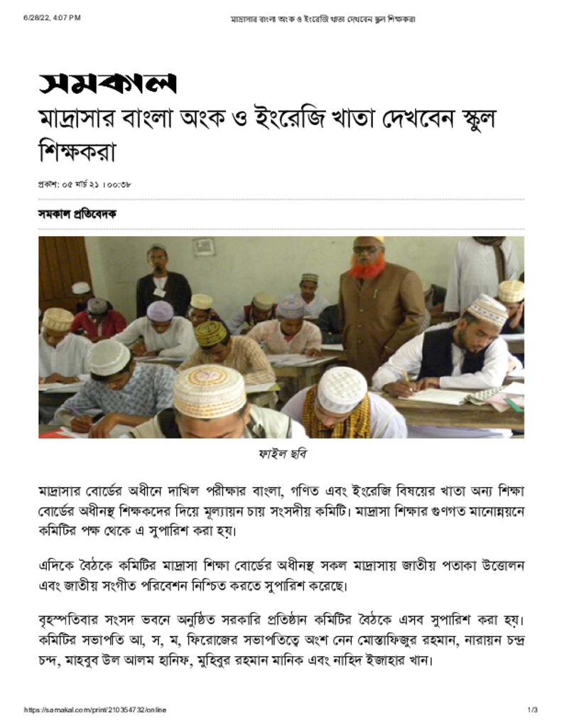 মাদ্রাসার বাংলা অংক ও ইংরেজি খাতা দেখবেন স্কুল শিক্ষকরা Published on 05 March 2021 Newspaper দৈনিক সমকাল Category Madrasah Education Download