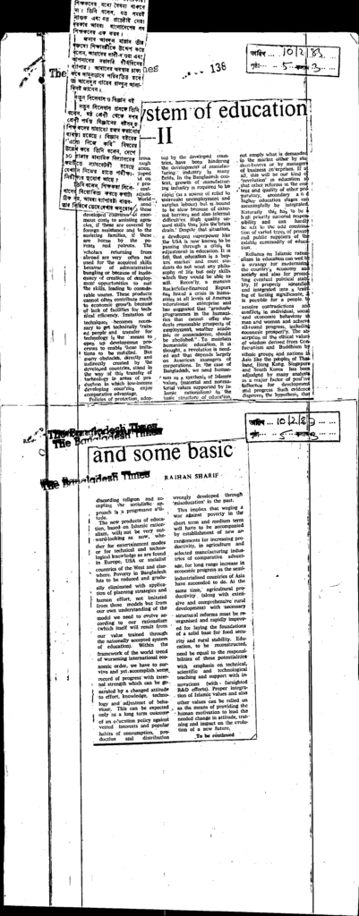 System of education Published on Newspaper The Bangladesh Times Category Admission / Seat Problem Download
