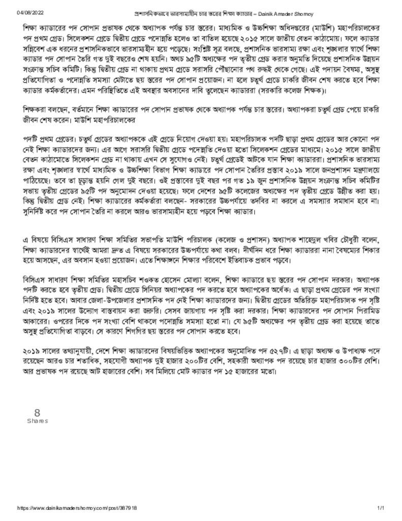 প্রশাসনিকভাবে ভারসাম্যহীন চার স্তরের শিক্ষা ক্যাডার – Dainik Amader Shomoy