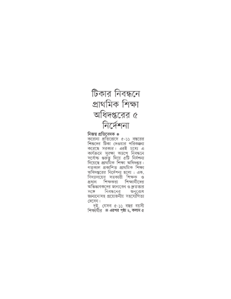 টিকার নিবন্ধনে প্রাথমিক শিক্ষা অধিদপ্তরের ৫ নির্দেশনা