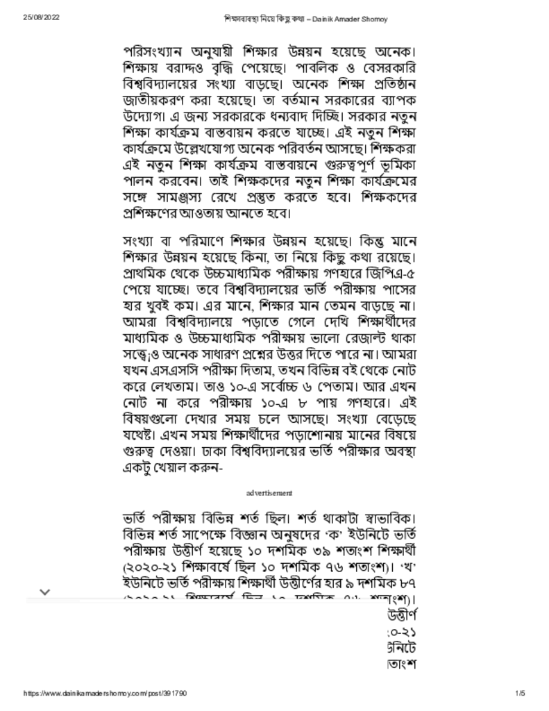 শিক্ষাব্যবস্থা নিয়ে কিছু কথা – Dainik Amader Shomoy