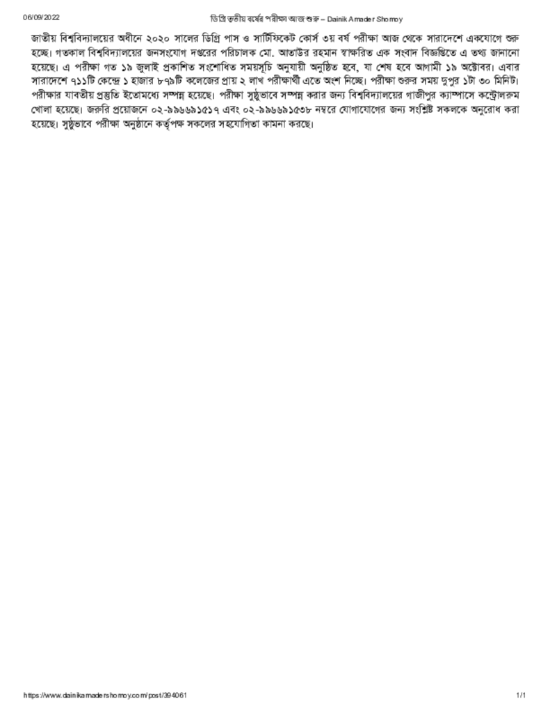 ডিগ্রি তৃতীয় বর্ষের পরীক্ষা আজ শুরু – Dainik Amader Shomoy Published on 09 June 2022 Newspaper দৈনিক আমাদের সময় Category Public Examination Download