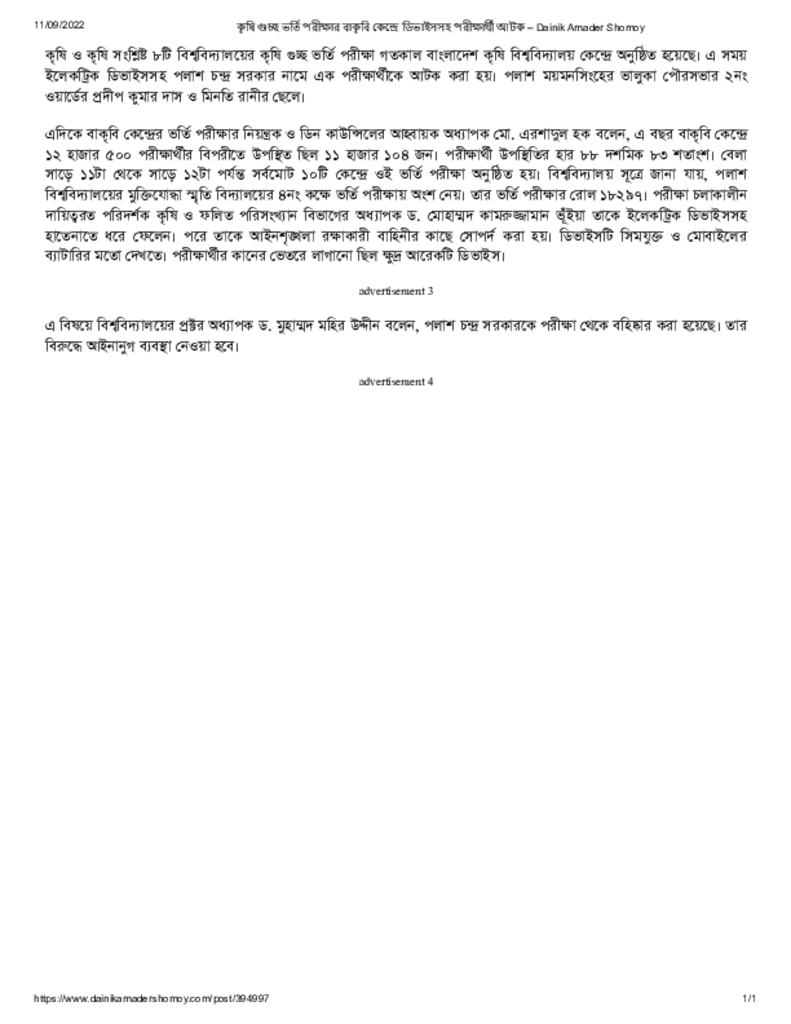কৃষি গুচ্ছ ভর্তি পরীক্ষার বাকৃবি কেন্দ্রে ডিভাইসসহ পরীক্ষার্থী আটক – Dainik Amader Shomoy Published on 11 September 2022 Newspaper দৈনিক আমাদের সময় Category Admission / Seat Problem General Education Download