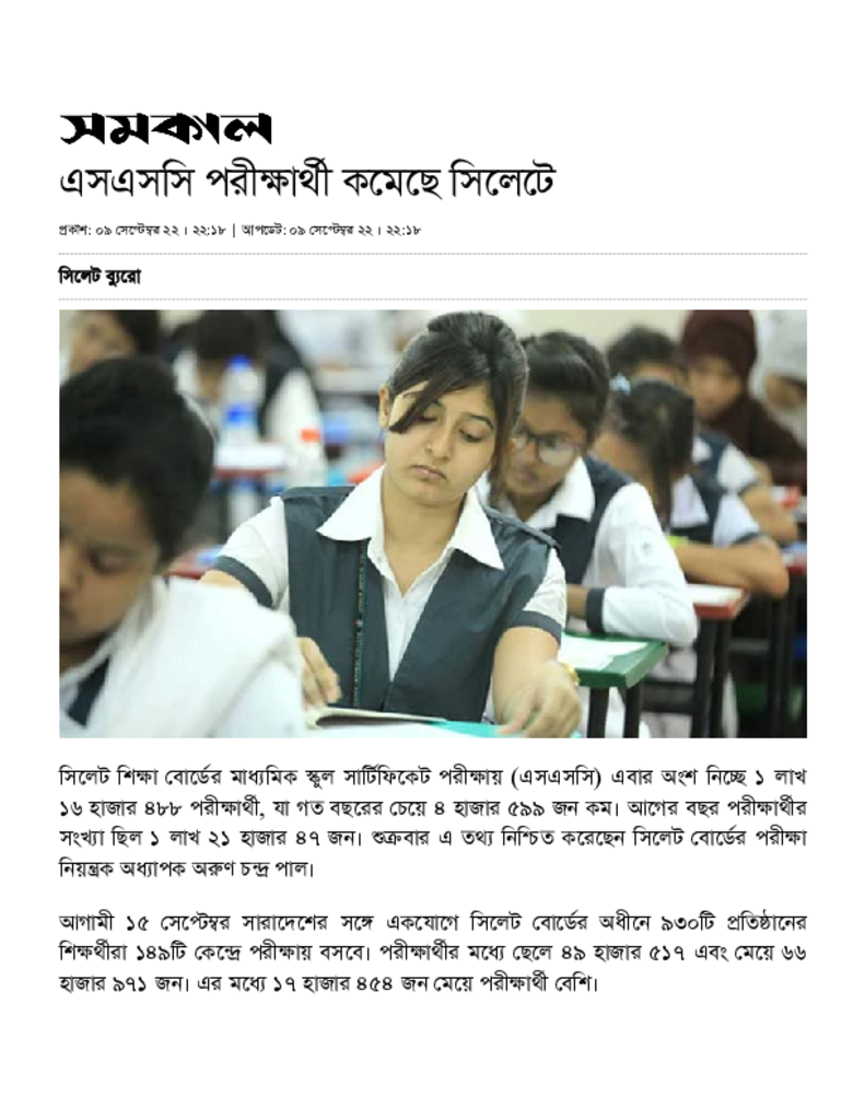 এসএসসি পরীক্ষার্থী কমেছে সিলেটে