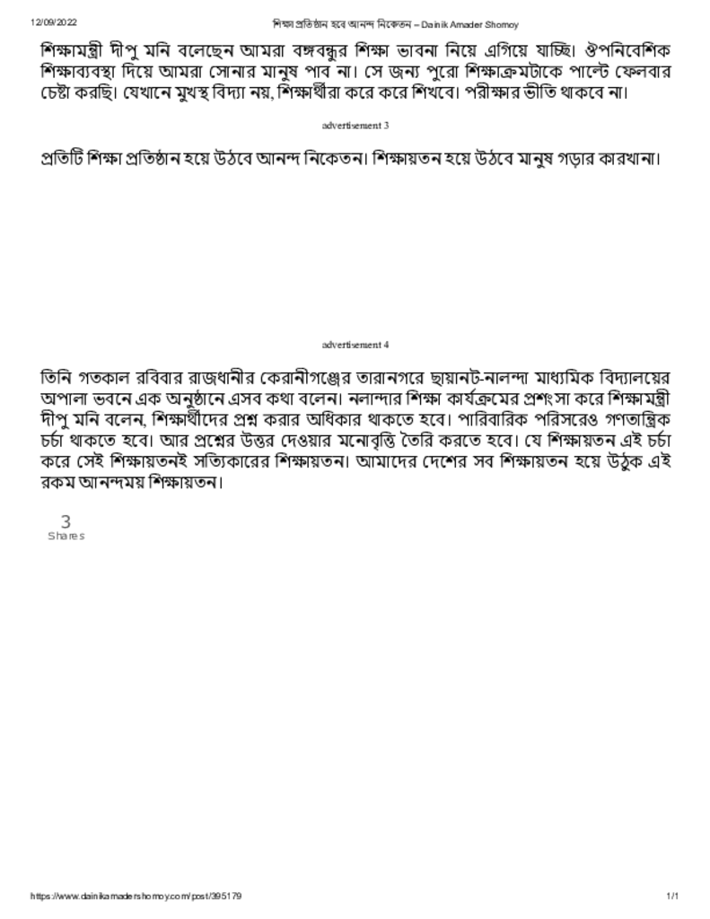 শিক্ষা প্রতিষ্ঠান হবে আনন্দ নিকেতন – Dainik Amader Shomoy Published on 12 September 2022 Newspaper দৈনিক আমাদের সময় Category Personal Opinion / Discussion / Commentary Professional Education Medical Download