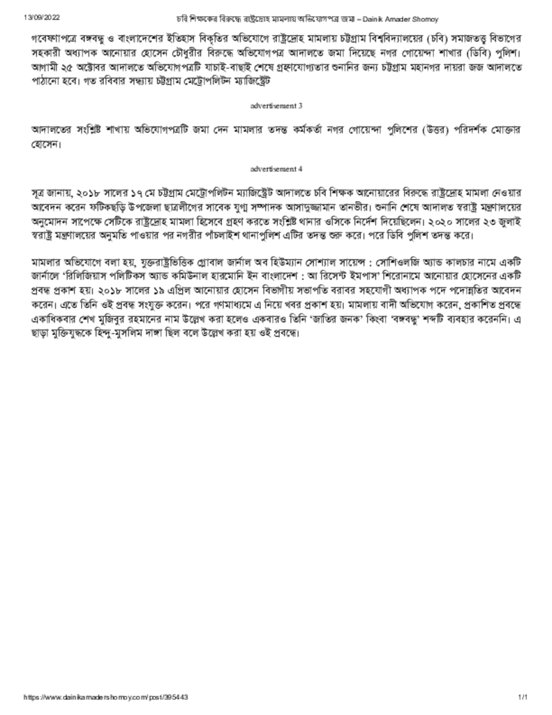 চবি শিক্ষকের বিরুদ্ধে রাষ্ট্রদ্রোহ মামলায় অভিযোগপত্র জমা – Dainik Amader Shomoy Published on 13 September 2022 Newspaper দৈনিক আমাদের সময় Category General Education General Education Higher Education Public Download
