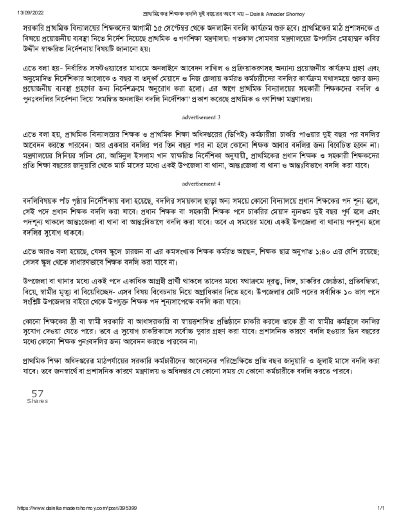 প্রাথমিকের শিক্ষক বদলি দুই বছরের আগে নয় – Dainik Amader Shomoy Published on 13 September 2022 Newspaper দৈনিক আমাদের সময় Category General Education General Education Download