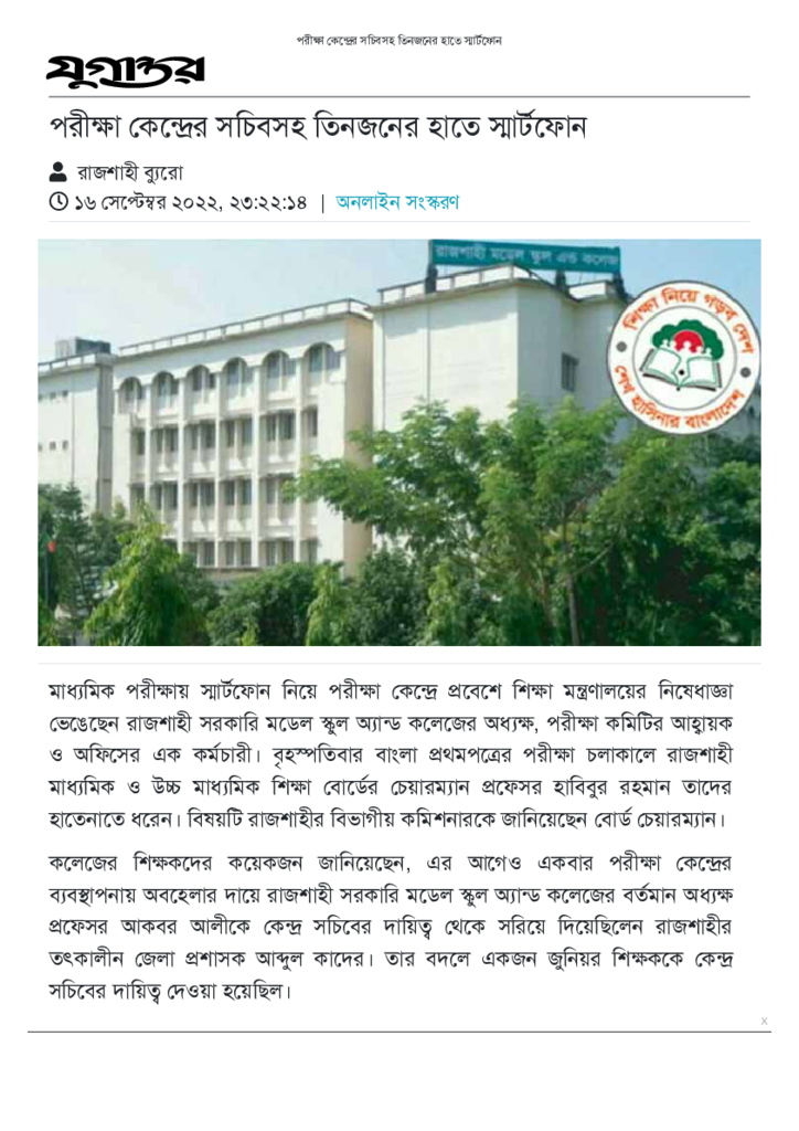 পরীক্ষা কেন্দ্রের সচিবসহ তিনজনের হাতে স্মার্টফোন