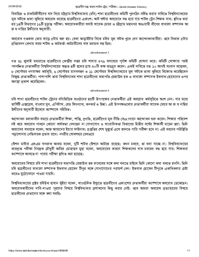 ছাত্রলীগ বন্ধ করল শাটল ট্রেন, পরীক্ষা – Dainik Amader Shomoy Published on 20 September 2022 Newspaper দৈনিক আমাদের সময় Category Student Politics Download