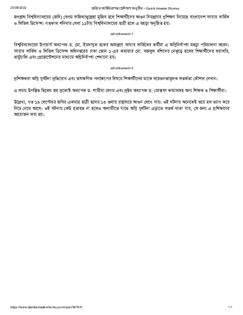 জবিতে অগ্নিনিরাপত্তা প্রশিক্ষণ অনুষ্ঠিত – Dainik Amader Shomoy Published on 25 September 2022 Newspaper দৈনিক আমাদের সময় Category General Education General Education Higher Education Public Download