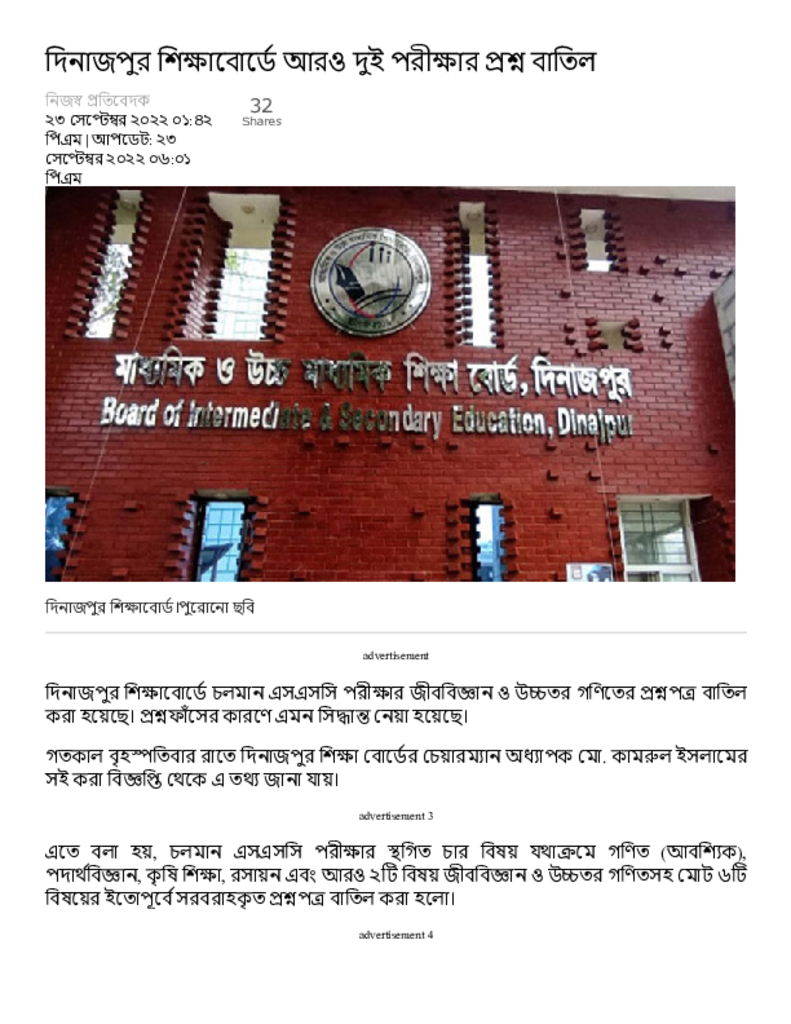 দিনাজপুর শিক্ষাবোর্ডে আরও দুই পরীক্ষার প্রশ্ন বাতিল – Dainik Amader Shomoy Published on 23 September 2022 Newspaper দৈনিক আমাদের সময় Category Educational Ministry / Departments Public Examination SSC Download