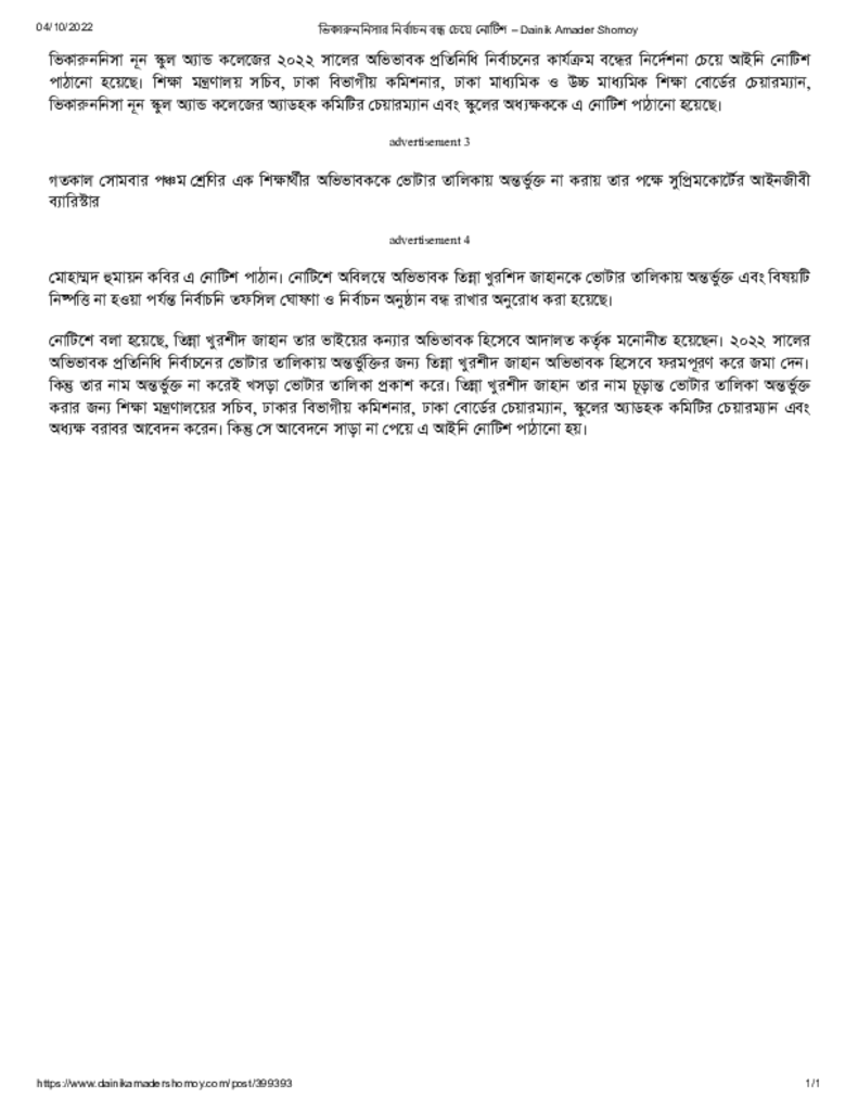 ভিকারুননিসার নির্বাচন বন্ধ চেয়ে নোটিশ – Dainik Amader Shomoy Published on 04 October 2022 Newspaper দৈনিক আমাদের সময় Category Others Download