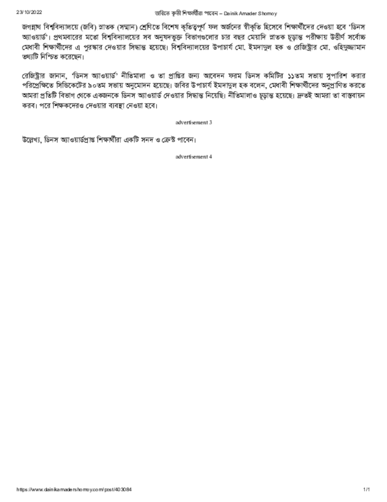 জবিতে কৃতী শিক্ষার্থীরা পাবেন – Dainik Amader Shomoy