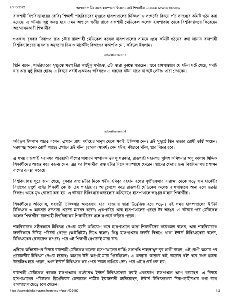 আশ্বাসে গভীর রাতে ক্যাম্পাসে ফিরলেন রাবি শিক্ষার্থীরা – Dainik Amader Shomoy Published on 20 October 2022 Newspaper দৈনিক আমাদের সময় Category General Education General Education Higher Education Public Download