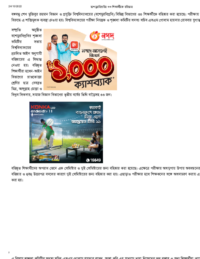 বশেমুরবিপ্রবির ৩৩ শিক্ষার্থীকে বহিষ্কার Published on 24 October 2022 Newspaper দৈনিক যুগান্তর Category Science Education General Education Higher Education Public Download