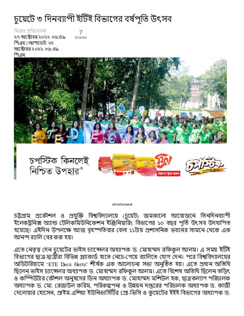 চুয়েটে ৩ দিনব্যাপী ইটিই বিভাগের বর্ষপূতি উৎসব – Dainik Amader Shomoy