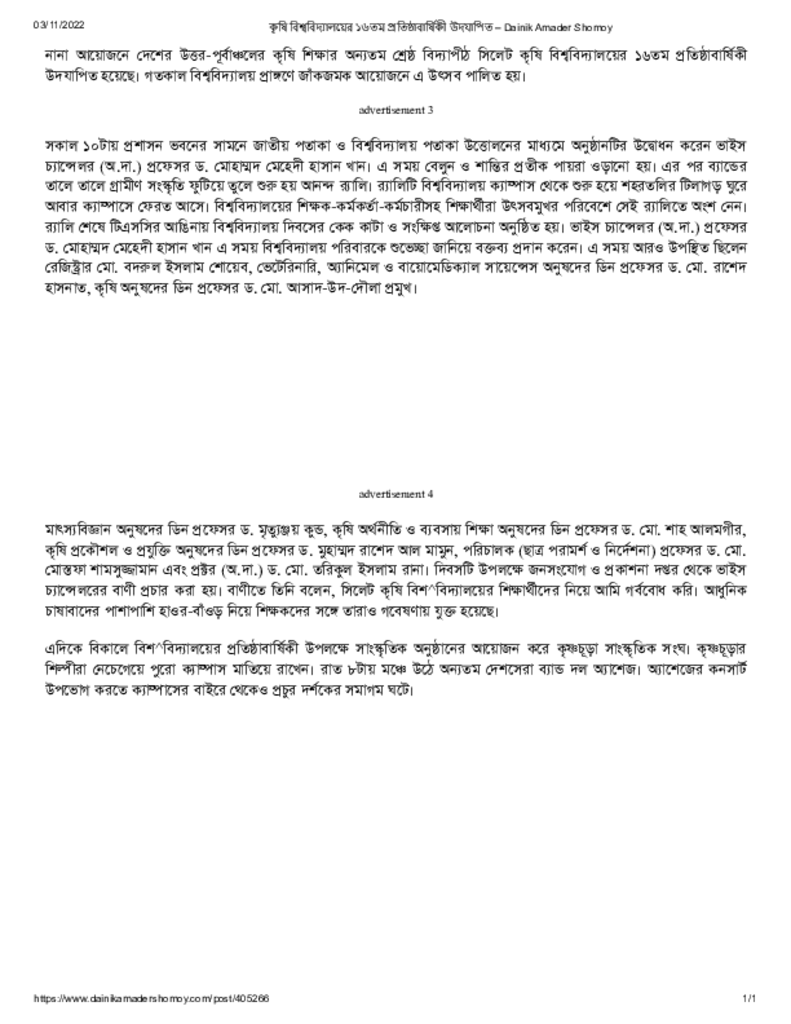 কৃষি বিশ্ববিদ্যালয়ের ১৬তম প্রতিষ্ঠাবার্ষিকী উদযাপিত – Dainik Amader Shomoy Published on 03 November 2022 Newspaper দৈনিক আমাদের সময় Category Science Education Download