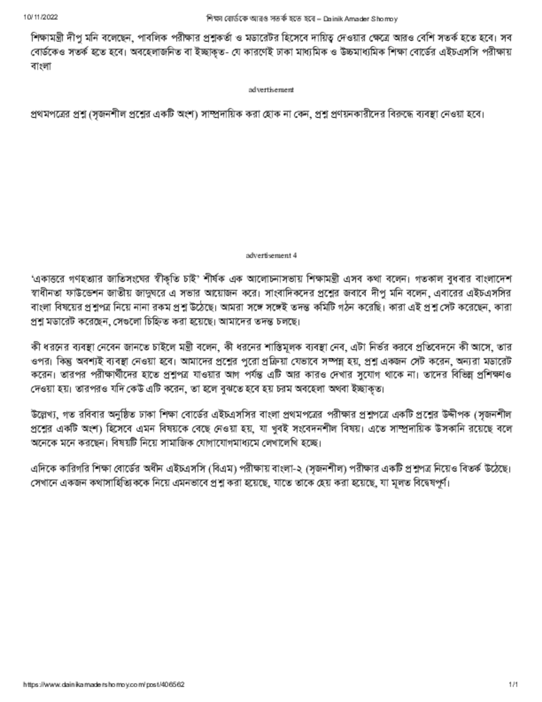 শিক্ষা বোর্ডকে আরও সতর্ক হতে হবে – Dainik Amader Shomoy Published on 10 November 2022 Newspaper দৈনিক আমাদের সময় Category Personal Opinion / Discussion / Commentary Download