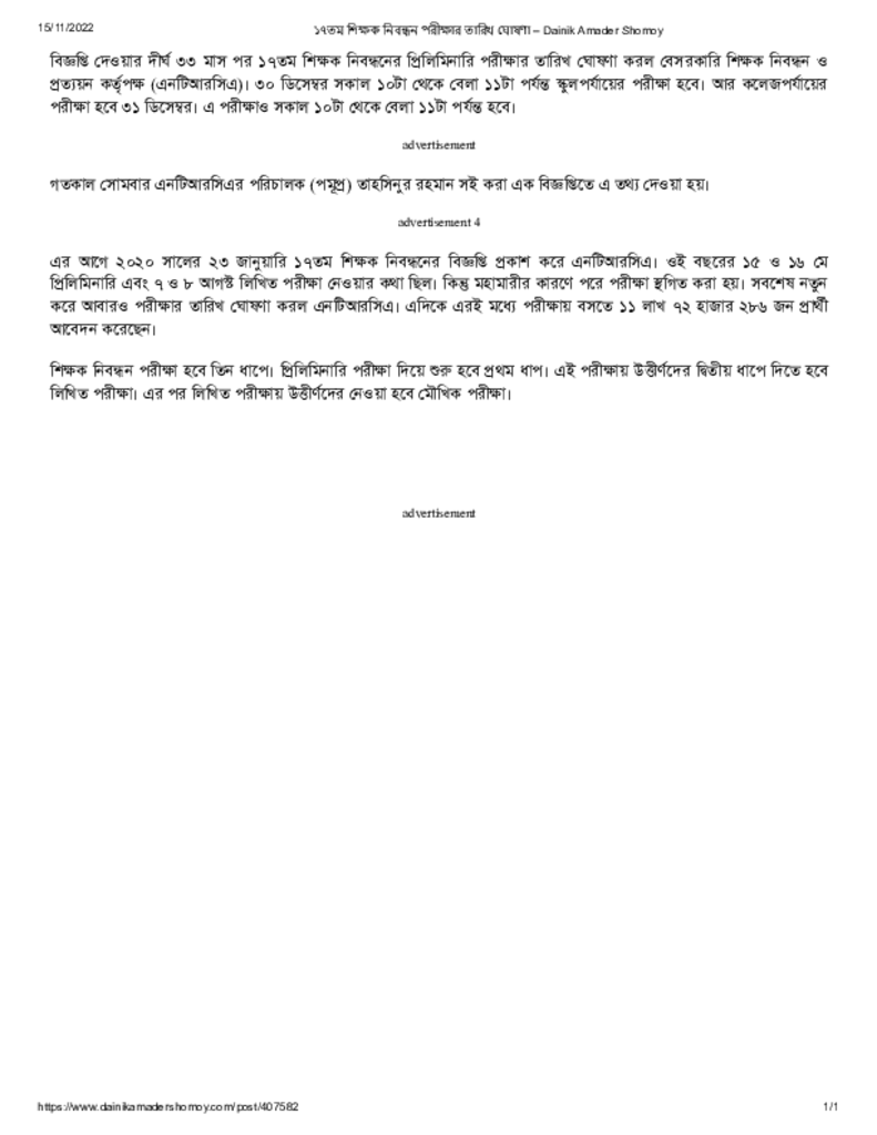 ১৭তম শিক্ষক নিবন্ধন পরীক্ষার তারিখ ঘোষণা – Dainik Amader Shomoy