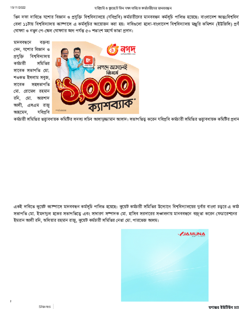 যবিপ্রবি ও কুয়েটে তিন দফা দাবিতে কর্মচারীদের মানববন্ধন Published on 15 November 2022 Newspaper দৈনিক যুগান্তর Category Science Education General Education Higher Education Public Download