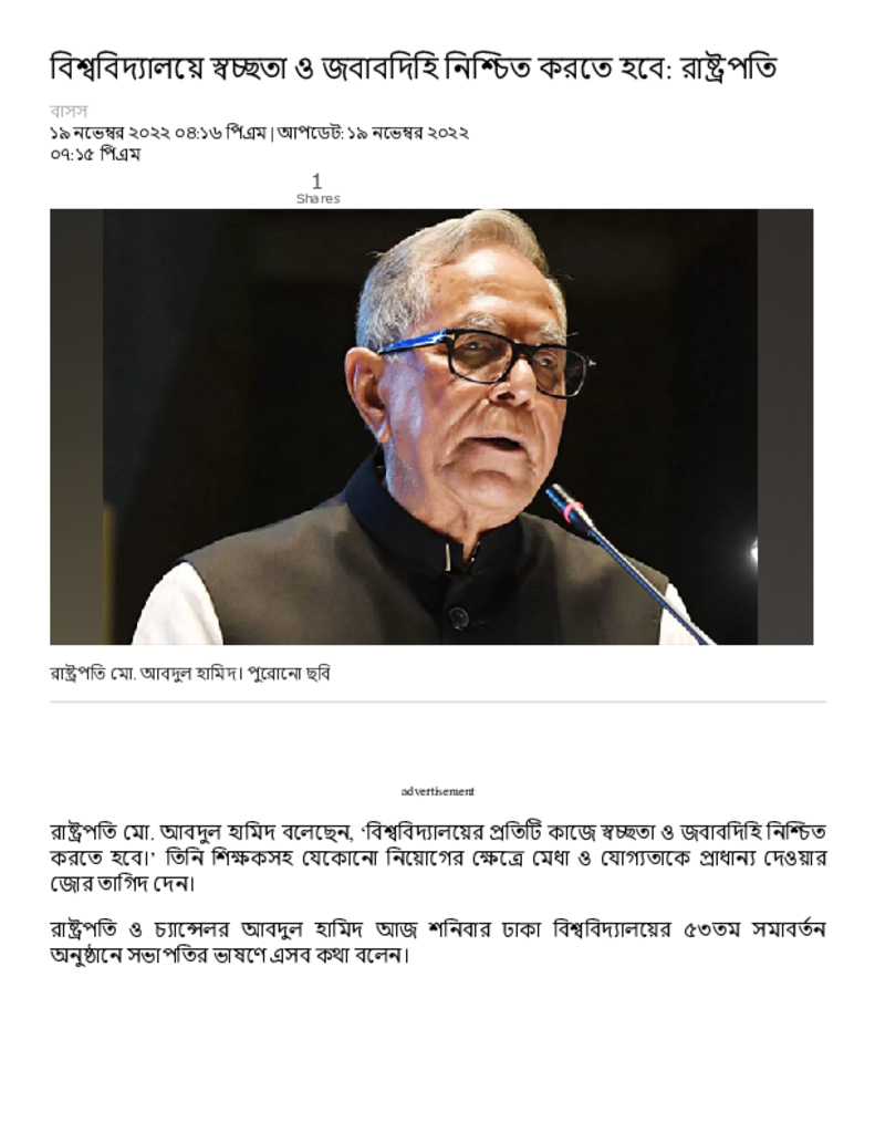 বিশ্ববিদ্যালয়ে স্বচ্ছতা ও জবাবদিহি নিশ্চিত করতে হবে_ রাষ্ট্রপতি   – Dainik Amader Shomoy