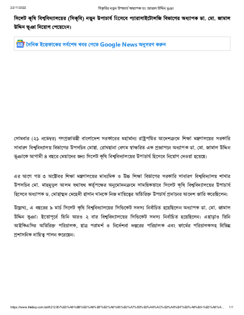 সিকৃবির নতুন উপাচার্য অধ্যাপক ডা. জামাল উদ্দিন ভূঞা Published on 22 November 2022 Newspaper দৈনিক ইত্তেফাক Category Science Education General Education Higher Education Public Download