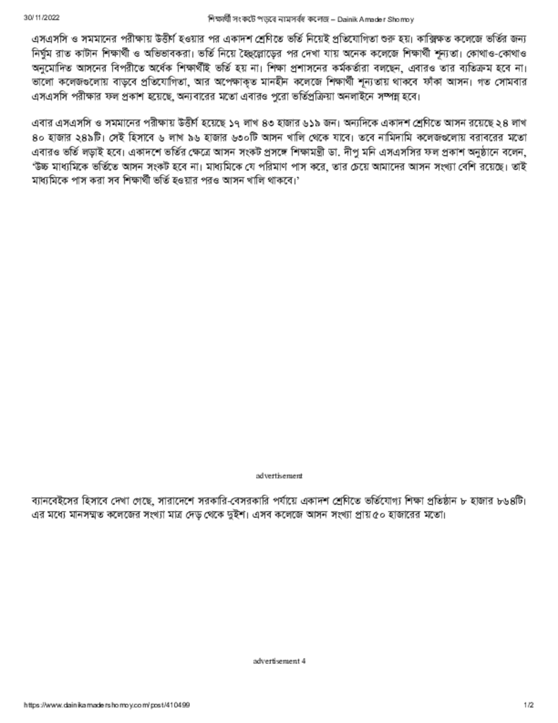 শিক্ষার্থী সংকটে পড়বে নামসর্বস্ব কলেজ – Dainik Amader Shomoy Published on 30 November 2022 Newspaper দৈনিক আমাদের সময় Category General Education General Education Download
