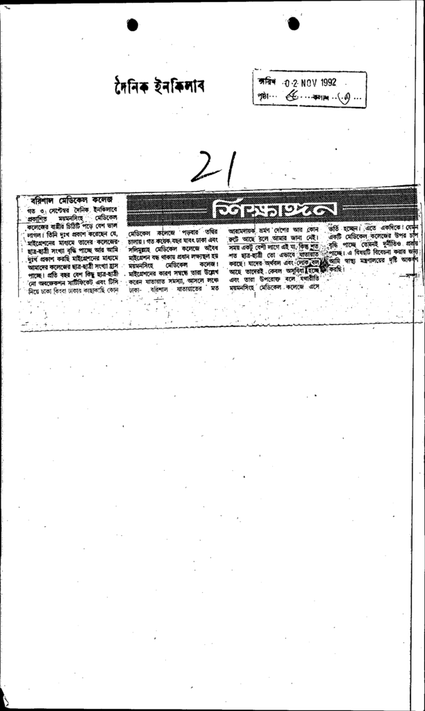 বরিশাল মেডিকেল কলেজ Published on Newspaper দৈনিক ইনকিলাব Category Professional Education Professional Education Medical Download