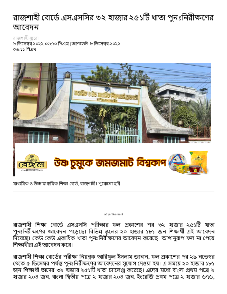রাজশাহী বোর্ডে এসএসসির ৩২ হাজার ২৫১টি খাতা পুনঃনিরীক্ষণের আবেদন – Dainik Amader Shomoy Published on 08 December 2022 Newspaper দৈনিক আমাদের সময় Category Public Examination Public Examination SSC Download