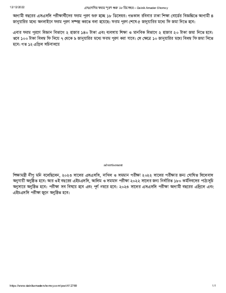 এসএসসির ফরম পূরণ শুরু ১৮ ডিসেম্বর – Dainik Amader Shomoy Published on 12 December 2022 Newspaper দৈনিক আমাদের সময় Category General Education General Education Download